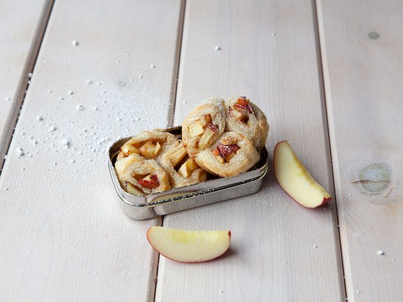 Leckerer Blätterteiggenuss mit frischem Obst. Für die Blätterteigschnecken lassen wir unseren Blätterteig kurz antauen, schmelzen in der Zeit Butter und schneiden einen Apfel in kleine Stücke. Für die Füllung geben wir noch Zimt und Honig in die Butterapfelmischung. Die verteilen wir anschließend auf dem Blätterteig. Dabei lassen wir einen Rand von 1cm frei. Den Blätterteig rollen wir nun von der Längsseite her auf. Zum Schluss in gleichmäßige Stücke teilen und 15-20 min backen. Schon jetzt riecht es wunderbar und morgen kann in der Schule endlich genascht werden.