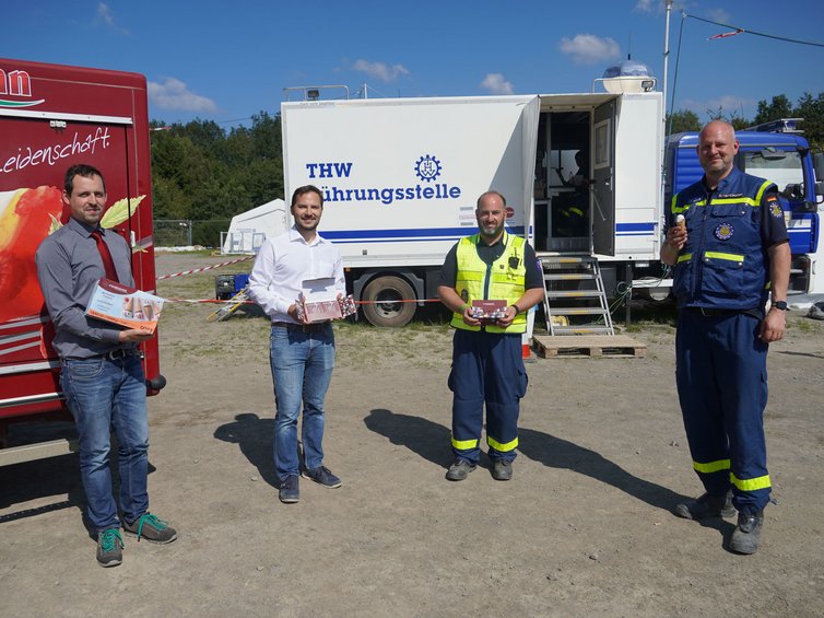 „Das THW mit seinen meist freiwilligen Helfern leistet extrem viel in der Region “, sagt Elmar Westermeyer, Geschäftsführer der eismann Tiefkühl-Heimservice GmbH. „Dafür wollten wir unseren Dank und unsere Anerkennung ausdrücken. So entstand die Idee, die Helfer mit einer Eislieferung zu überraschen.“ Am 08. September, einem heißen Spätsommertag, strömten dann die Helfer auf den Marktplatz inmitten des Zeltdorfes um die willkommene Abkühlung entgegen zu nehmen.