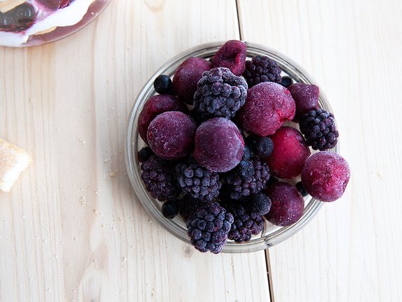 Die Komponenten der dunklen Beerenmischung, nämlich Heidelbeeren, Kirschen und Brombeeren, bieten sich perfekt an, um mit einem leckeren Teig im Ofen zu verschmelzen. Wer Sorgen hat, dass gefrorene Früchte matschig werden, kann sie vorher mit Stärke bestäuben. Zusammen mit einem Rührkuchen oder Biskuitteig sind sie so ganz einfach zu verarbeiten.