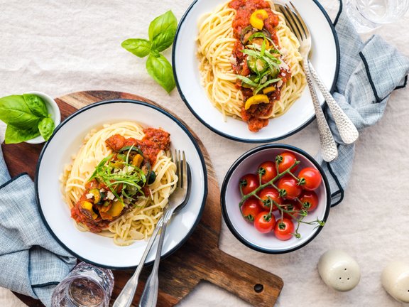 Spaghetti Napoli hat bestimmt jeder schon einmal genossen. Spaghetti alla napoletana ist die ursprüngliche und einfachste Version der Spaghetti mit Tomatensauce. Das Gericht gehört zu den Klassikern der neapolitanischen Küche. In unserem Fall werden die Nudeln allerdings noch mit dem eismann Zucchini-Gemüse Mix verfeinert. Die Tomatensauce Napoli kommt in diesem Fall auch von eismann, ganz praktisch aus der Flasche und somit auch wiederverschließbar! Noch etwas frischen Basilikum, Parmesan oder Mozzarella dazu und schon wird das kulinarische Fernweh gestillt.