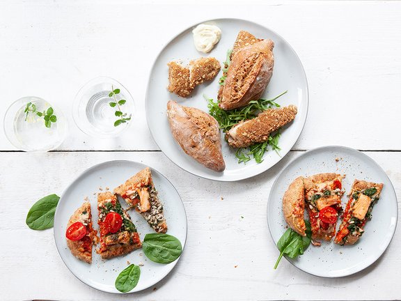 Unser eismann Alaska-Seelachs "Dinkel und Roggen" ist der Star dieses Gerichts. Seine Kruste wird beim Anbraten in der Pfanne richtig schön knusprig. Während der Fisch brät, backen unsere Brötchen, die eismannMaroni-Spitzbub, im Ofen. Danach fehlen uns zu unserem Glück noch etwas Salat und die passende Sauce. Fertig ist ein schnell gemachtes, richtig leckeres Fischbrötchen.