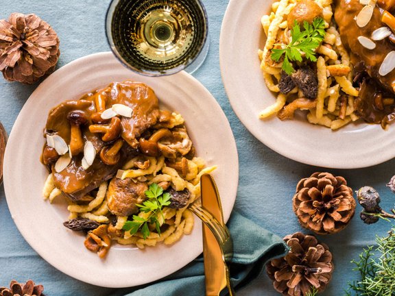 Hirschbraten mit Wildpilz-Auslese Spätzle