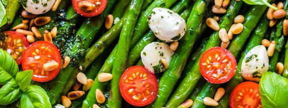Endlich beginnt sie, die Spargelsaison! Ein Indiz dafür, dass es endlich wärmer, die Tage länger und die Gerichte auf dem Teller wieder abwechslungsreicher werden. Ob grün oder weiß, Spargel ist ein wunderbar vielseitiges Gemüse. Das zeigen wir auch in unserem heutigen Rezept – Spargelsalat mit Büffelmozarella-Kugeln, aromatischen Kirschtomaten und einer ordentlichen Portion Basilikum.