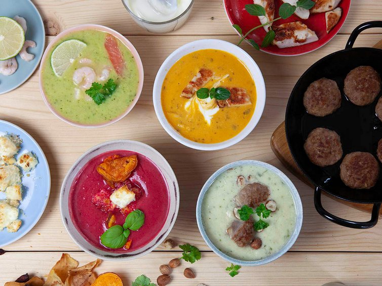 Tiefkühlsuppen haben viele Vorteile: Fein abgeschmeckt wurden sie eingefroren und sind ganz flexibel einsatzbereit. Da sie nur im heißen Wasserbad erhitzt werden, kann man in der Zeit entspannt den Tisch decken oder ein Topping vorbereiten. Hier kommen 4 Beispiele, wie Sie unsere Suppen ganz kreativ verfeinern können.