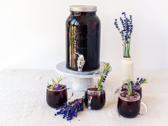 Auch diese Variante hat unser Herz erobert. Die Basis ist ein süß-saurer Sirup aus den eismann Waldheidelbeeren und Zitrone, mit einem Hauch von Rosmarin. Aufgegossen wird sie in einem Limonadenbehälter mit spritzigem Sekt. Mehr braucht es im Sommer doch gar nicht, um glücklich und vor allem erfrischt zu sein.