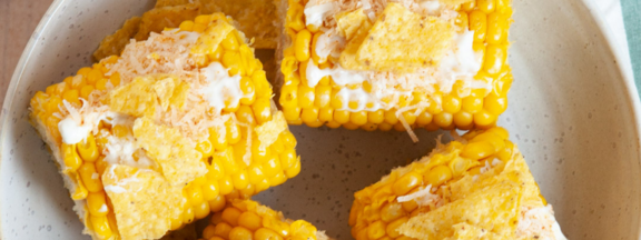 Den Mais bereiten wir nach Packungsanleitung im heißen Kochwasser zu. Diese Zeit nutzen wir, um die Marinade vorzubereiten. Hierzu verrühren wir Mayonnaise, Schmand, Knoblauchpulver und schmecken das Ganze mit Salz und Pfeffer ab. Nachdem die blanchierten Maiskolben kurz gegrillt wurden, bestreichen wir sie mit der Marinade und streuen geriebenen Parmesan, Paprikapulver und die Nachos darüber. Einfach köstlich!