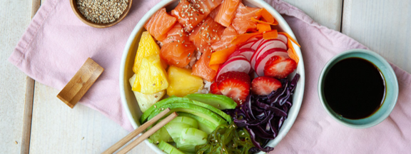 Passend zum Christopher Street Day, wird es bunt bei uns. Dazu füllen wir unsere Schüssel mit Reis, leckerem Fisch und erfrischenden Beilagen. Von allem kommt etwas dazu, damit wir eine bunte Vielfalt haben. Die Pokebowl kann beliebig variiert werden und durch süße Früchte und knackiges Gemüse ergänzt werden.