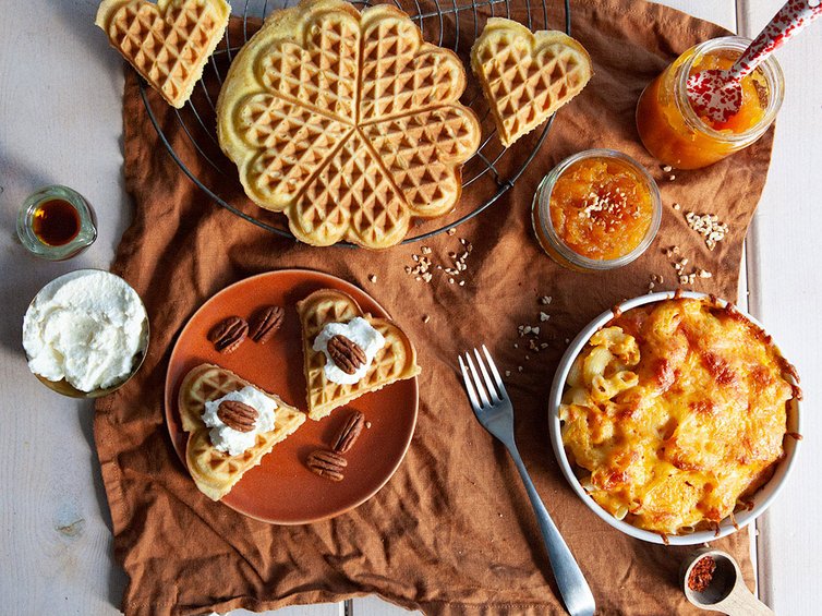 Im Herbst wird es gemütlich: Wir schmeißen den Ofen und das Waffeleisen an und kochen mit dem beliebten Fruchtgemüse leckere Wohlfühlgerichte zum Verschenken, Schlemmen und Teilen. Vorhang auf für 3 besondere Rezepte mit unseren eismann Butternut-Kürbis-Produkten.