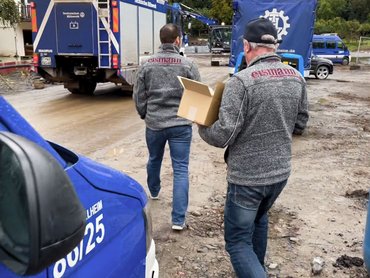 Eismann Bonefas verteilt Eis und Lebensmittel im Flutgebiet