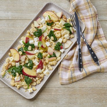 Aus Schwaben: BIO-Eierknöpfle mit g.g.A. Siegel, der geschützten geographischen Angabe. In handwerklicher Optik, traditionell aus Weich- und Hartweizen, Eiern, Salz und Wasser hergestellt. Einfach in Butter in der Pfanne gebraten als Hauptmahlzeit mit Salat oder als Beilage zu vielen Fleischgerichten servieren. Ein Tipp von eismann: Gebratenen Knöpfle mit Obstkompott und mit Zimt und Zucker bestreut genießen.