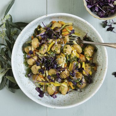 Der italienische Klassiker nun glutenfrei: Zarte Gnocchi aus Blumenkohl, Reis- und Maismehl. Dank ihres milden Geschmacks sind die Klößchen vielseitig einsetzbar: Ob gebraten mit einem frischen Salat oder als Vorspeise – typisch italienisch in Olivenöl geschwenkt und mit Parmesan bestreut.