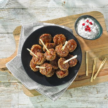 Unsere Mini-Frikadellen sind nicht nur auf jedem Buffet ein gern gesehener Klassiker. Hergestellt aus saftigem Rinder- und Schweinefleisch deutscher Herkunft, sind sie handwerklich geformt, gewürzt und mit Zwiebeln verfeinert. Die mundgerechten Fleischbällchen sind bereits gebraten und können in nur 10 Minuten in der Pfanne zubereitet werden. Durch ihre hohe Qualität und den besonderen Geschmack sind sie ein absolutes Must-have für alle Fleischliebhaber. Die Kombination aus saftigem Fleisch und feinen Gewürzen macht sie zu einem wahren Gaumenschmaus. Ob als Snack, Hauptgericht oder Einlage - die Mini-Frikadellen sind vielseitig einsetzbar und sorgen für eine herzhafte Mahlzeit. In der Pfanne werden sie in heißem Pflanzenfett bei mittlerer Temperatur für ca. 10 Minuten gebraten und dabei regelmäßig gewendet. Auch in Kombination mit würziger Tomatensauce oder frischen Kräutern entfalten sie ihr volles Aroma. Die Mini-Frikadellen sind eine wahre Bereicherung für jede Küche und eignen sich perfekt für schnelle und unkomplizierte Rezepte. Ob als Beilage zu Gemüse und Kartoffeln oder als Hauptdarsteller in einem leckeren Burger - mit ihnen sind der Fantasie keine Grenzen gesetzt. Überzeuge dich selbst von der hochwertigen Qualität und dem einzigartigen Geschmack unserer Mini-Frikadellen. Sie werden handwerklich geformt und aus besten Zutaten hergestellt, um dir ein besonderes Geschmackserlebnis zu bieten. Lass dich von ihrem köstlichen Geschmack und ihrer Vielseitigkeit überzeugen und probiere sie in deinen Lieblingsrezepten aus. Rezept-Tipp: Wie wäre es mit Mini-Frikadellen als Einlage in einer deftigen Gemüsesuppe oder als Beilage zu cremigen Kartoffelpüree? Auch als Fingerfood auf Partys oder als Snack für zwischendurch sind sie immer eine gute Wahl. Bestelle jetzt unsere Mini-Frikadellen und genieße einen leckeren und herzhaften Genuss für die ganze Familie!