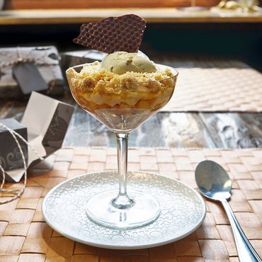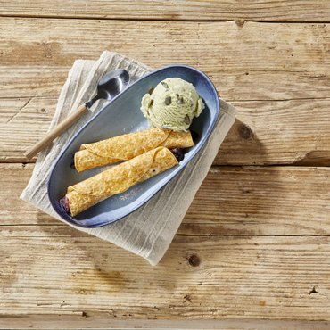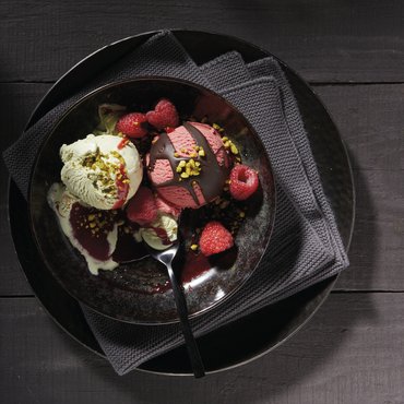 Cremige Pistazien Eiscreme mit gerösteten und gehackten kalifornischen Pistazien. Vollmundig und nussig eignet sie sich ideal für elegante Eisbecher, raffinierte Desserts oder als delikates Topping für warme Crêpes und Kuchen.