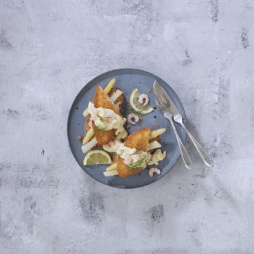 Im Kühlschrank ca. 8 Stunden. Die augetauten Tiefseegarnelen für die Weiterverarbeitung mit kaltem Wasser abspülen, gut abtropfen lassen.