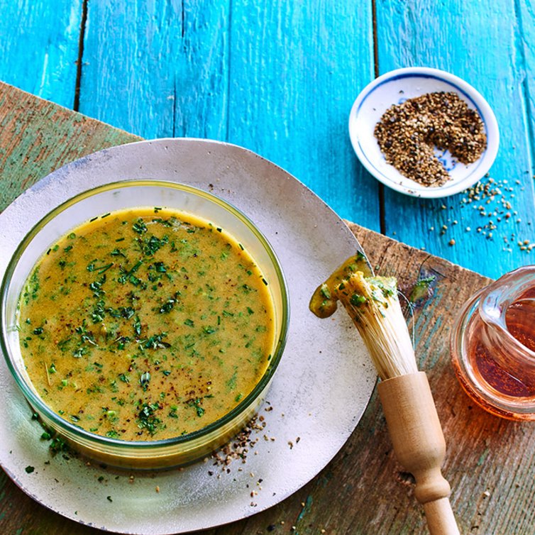 Das Grillgut mit der Marinade bestreichen und im Kühlschrank 2 Stunden einziehen lassen.