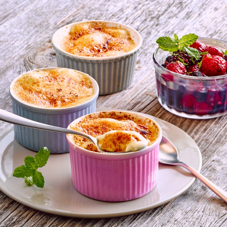 Suchst Du nach einem Dessert, das schnell zuzubereiten ist und trotzdem einen Hauch von Raffinesse auf den Tisch zaubert? Unsere Beeren-Frucht ""Brûlée"" ist in weniger als 20 Minuten fertig und hält genau das, was sie verspricht: eine unwiderstehliche Kombination aus Cremigkeit und karamellisierter Süße. Mit einem mittleren Schwierigkeitsgrad und einer Zubereitungsmethode, die den Grill in den Mittelpunkt stellt, wird dieses Rezept garantiert zum Star Deiner Nachspeise.