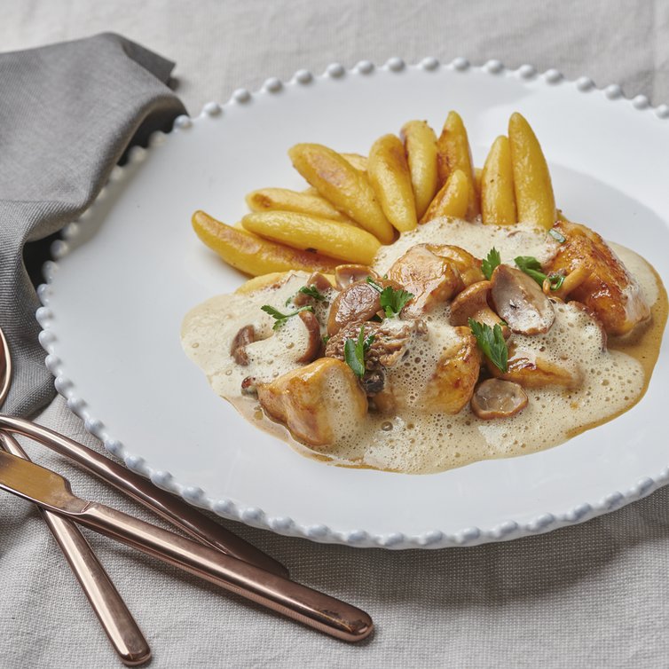 BIO-Hähnchenbrust mit Waldpilzcrème und Schupfnudeln (von Johann Lafer)