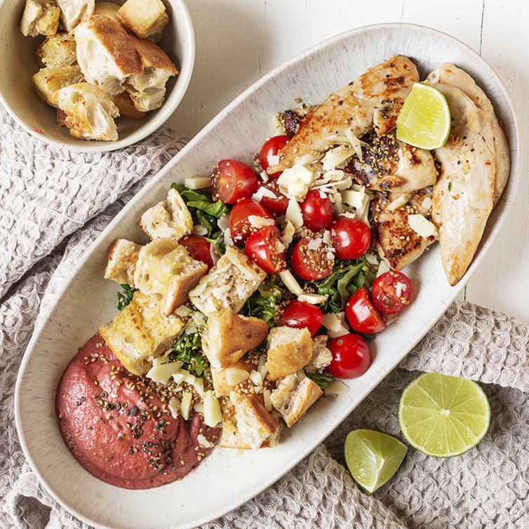 Caesar´s Hähnchen Bowl mit Beete Hummus