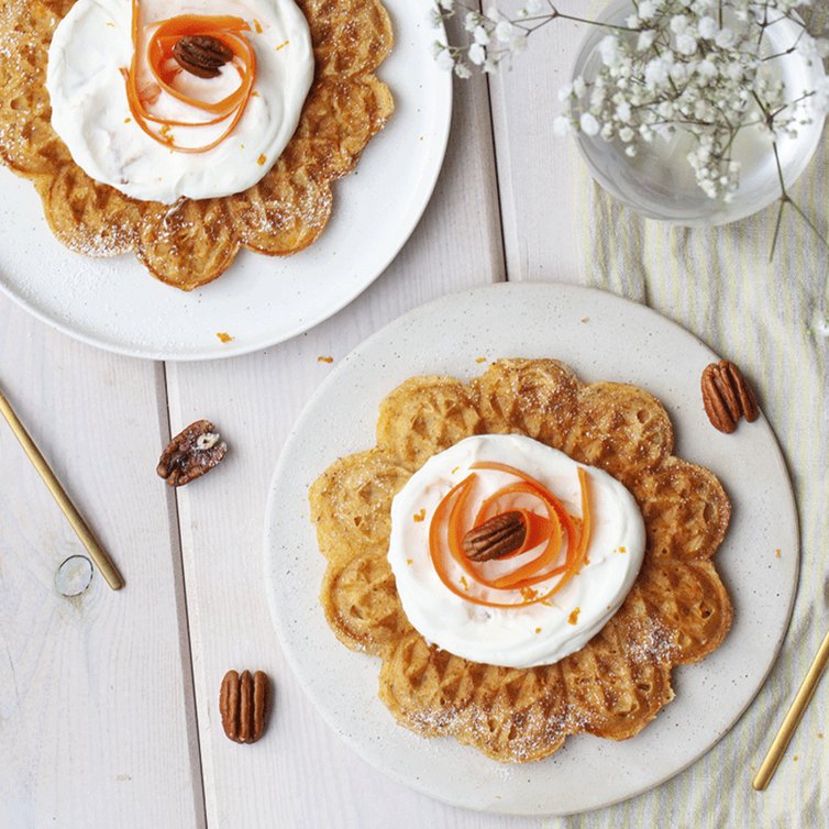 Carrot Cake Waffeln mit Cheesecake-Sahne