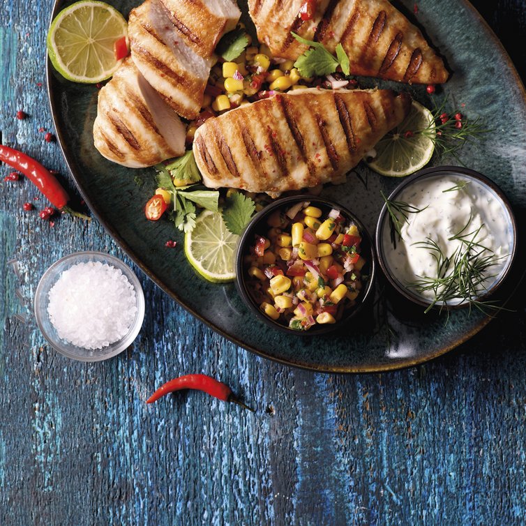 Dreierlei Dips für echten Grillgenuss: Kräuterbutter, Joghurtdip und frische Salsa Cruda sorgen für Abwechslung auf dem Teller. Ideal zum saftigen Grillhähnchen – einfach vorbereitet und voll im Geschmack!