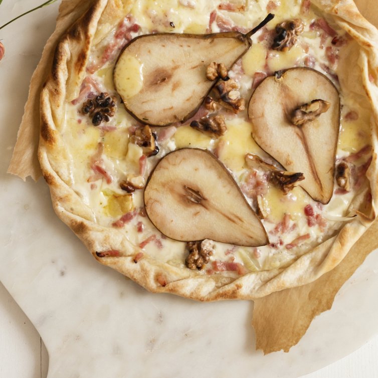 Elsässer Flammkuchen Birne-Munster-Walnuss