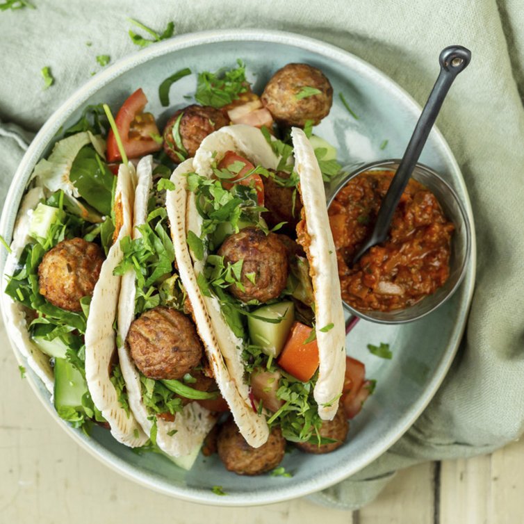 Du hast Lust auf ein schnelles und leckeres Gericht, das unkompliziert in der Zubereitung ist? Unsere Falafeltasche mit Kein-Hack-Bällchen ist in nur 30 Minuten fertig und dabei kinderleicht zuzubereiten. Die Bällchen werden in der Pfanne gebraten und sorgen für eine knusprige Hülle mit herrlich würzigem Kern – perfekt für einen entspannten Lunch oder das nächste Familienessen.