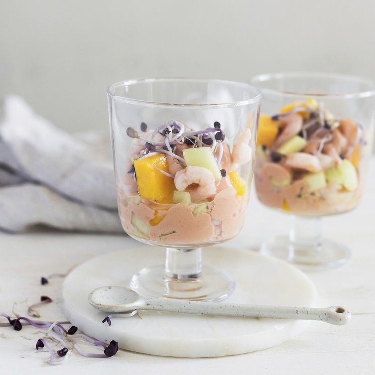 Garnelencoctail mit Mango, Gurke und Dill