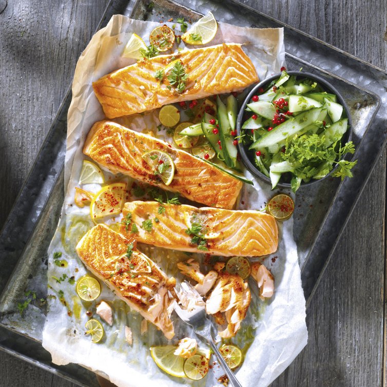 Gebackener Lachs mit Gurkensalat