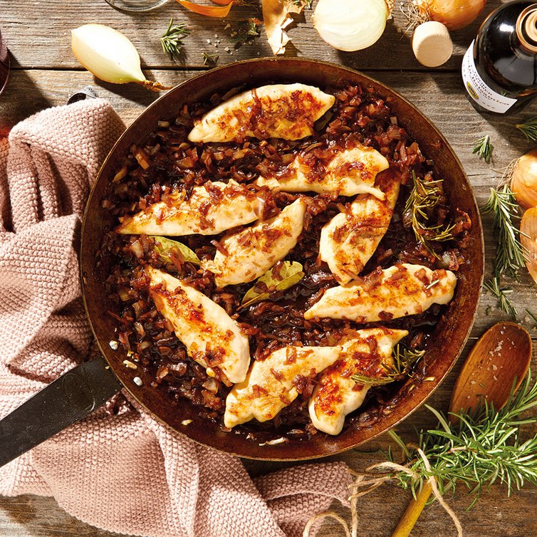Hähnchen - Filetspitzen mit Balsamico-Zwiebeln