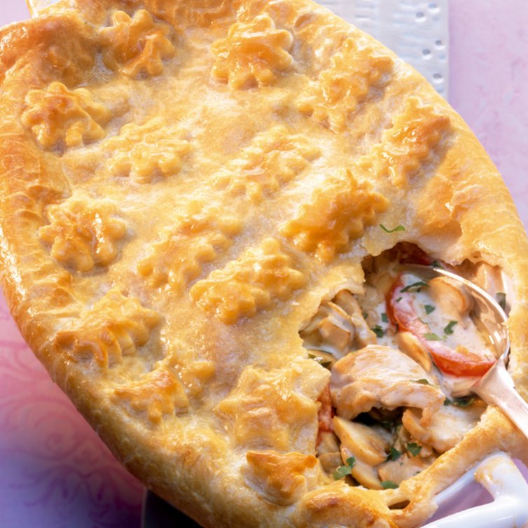 Hähnchengeschnetzeltes mit Blätterteighaube