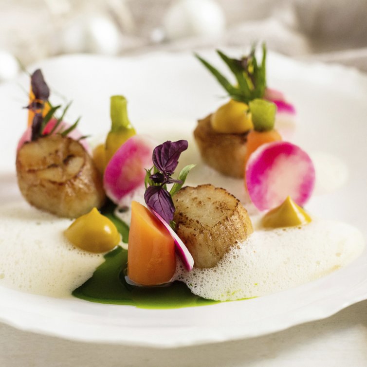 Jakobsmuscheln mit Karottenpüree und Estragonsauce (von Johann Lafer)