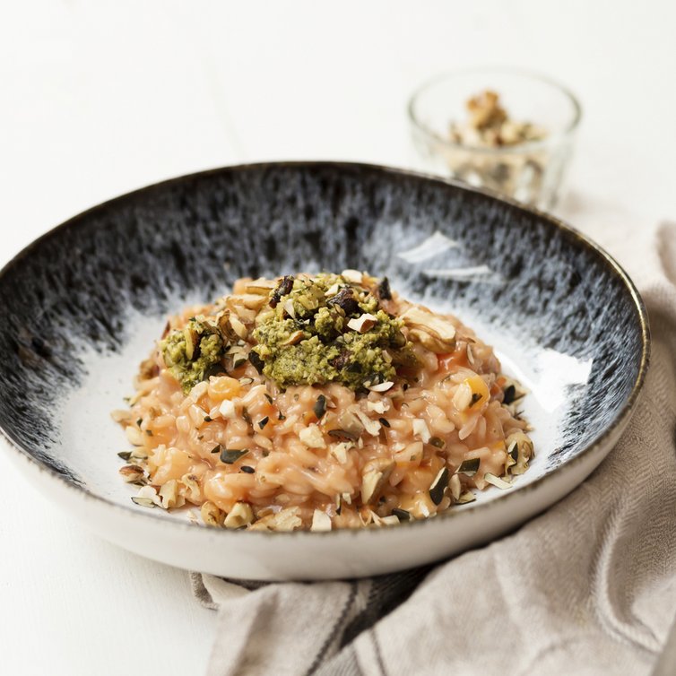 Kürbisrisotto mit Nusspesto