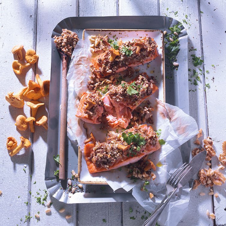 Ofenlachs mit Pfifferlings-Kruste