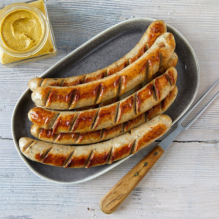 Die Original Thüringer Rostbratwurst aus der Verpackung nehmen und zugedeckt im Kühlschrank auftauen lassen.