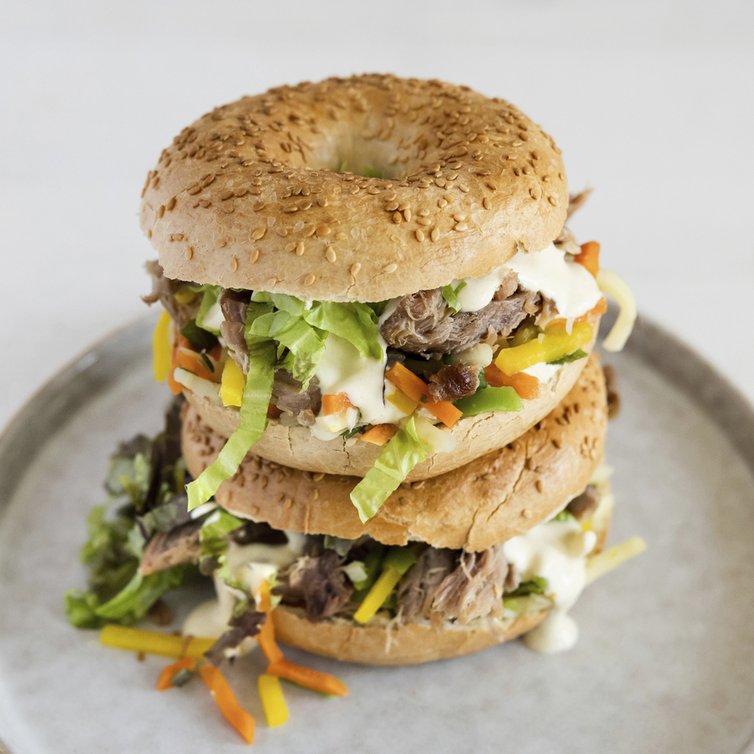 Pulled Pork Bagel mit Juliennegemüse