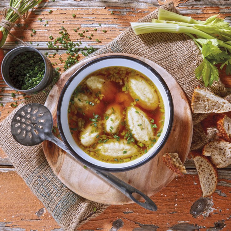 Nun die gefrorenen Grießnockerln hineingeben und sie bei schwacher Hitze auf kleiner Stufe ca. 10 Minuten ziehen lassen.