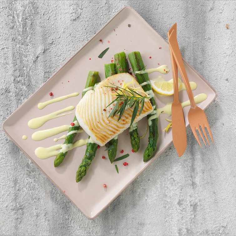 Schwarzer Heilbutt mit Zitronensauce & grünem Spargel