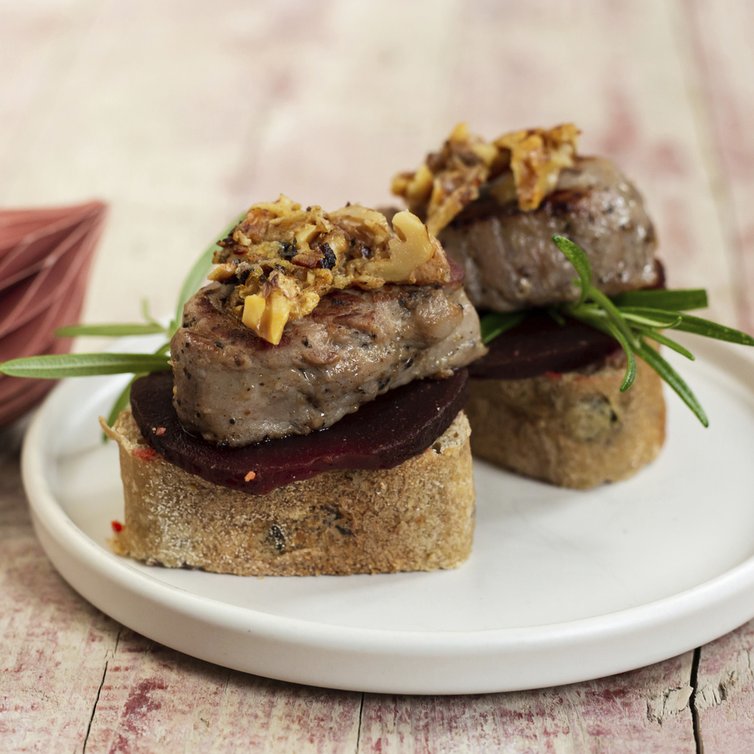 Schweinefilet "Rote Beete-Haselnuss-Kapern"