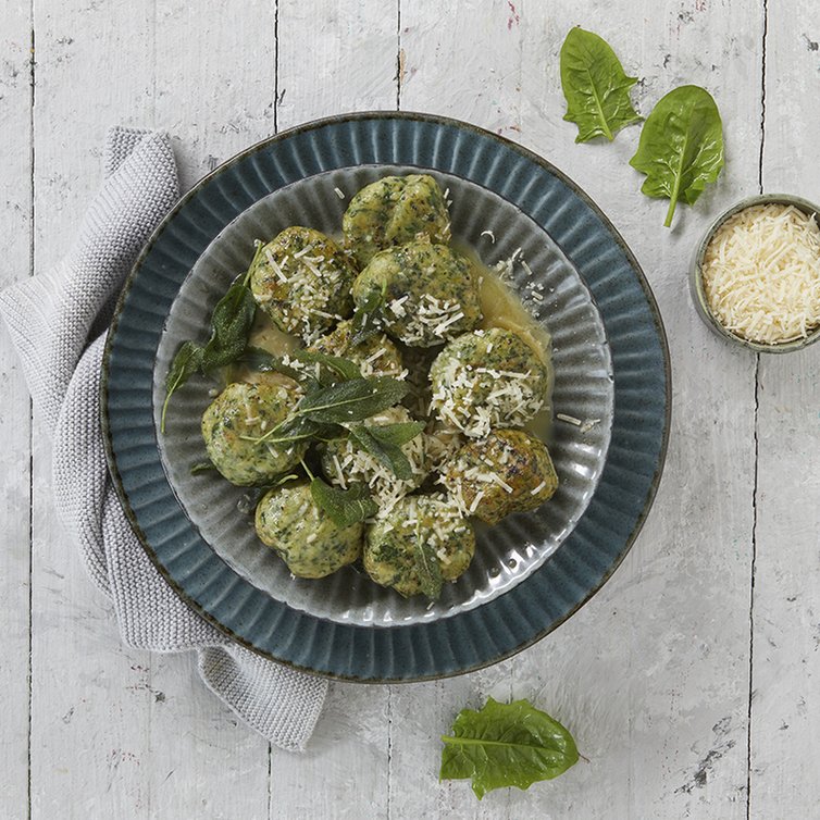 Spinat-Malfatti mit Salbeibutter und Parmesan
