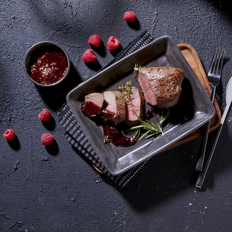 Striploin Steak mit Himbeer Balsamico Juice