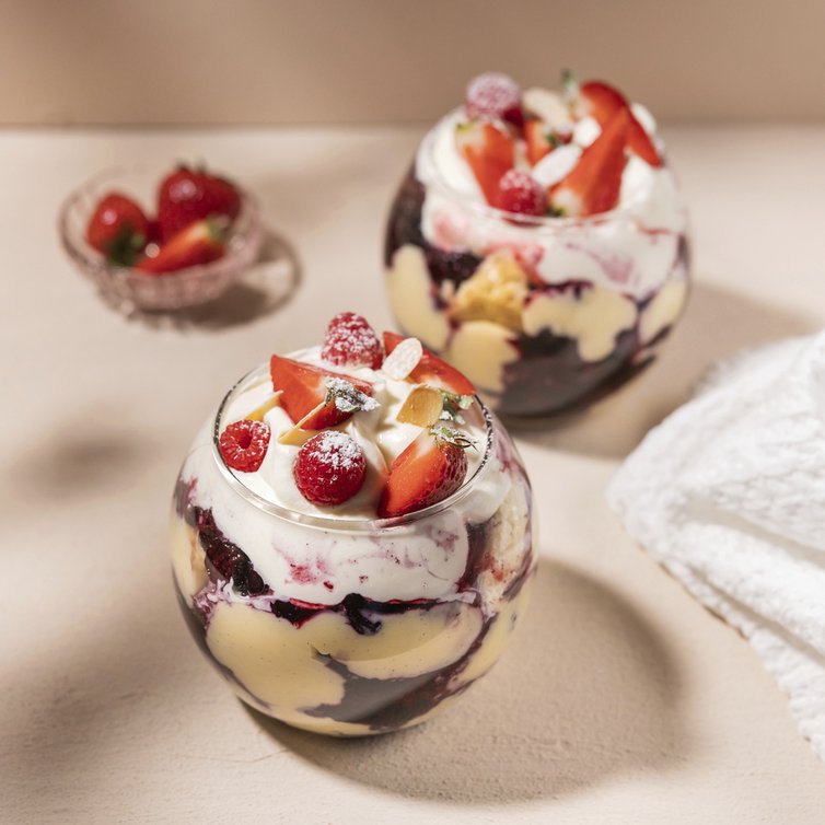 Trifle mit dunkler Beerenmischung und Vanillecreme (von Johann Lafer)