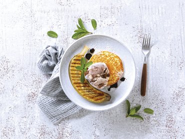 Pancakes mit karamellisierten Äpfeln und Mandelsabayon