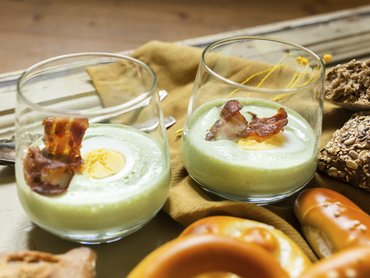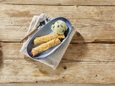 Heidelbeer Pfannkuchen mit Pistazien Eis