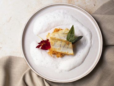 Gebratener Zander auf Paprika-Kraut mit Rieslingschaum (von Johann Lafer)