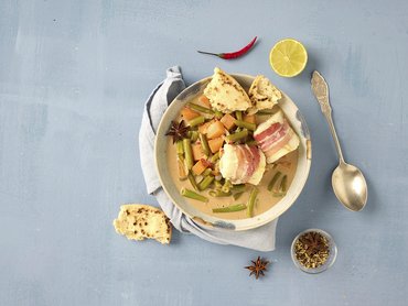 Grüne Bohnen-Curry mit Süßkartoffeln und Kabeljau