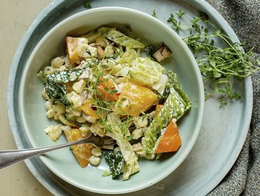„Stampf“ Kürbis mit Grünkohl und Kichererbsen