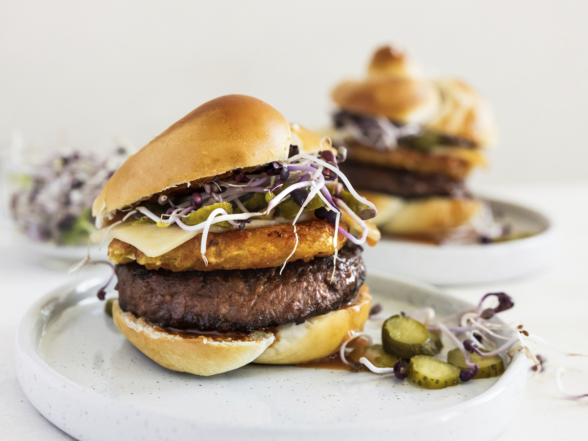 Broccoli-Mais-Burger mit marinierten Schalotten und Salbei