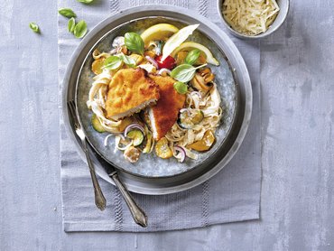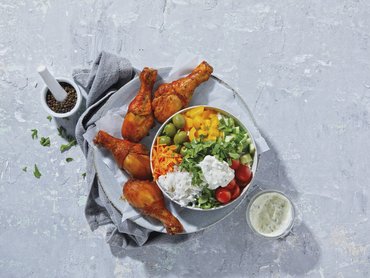 Vegetarische kein-Hack Frikadellen Spieße mit Granatapfel-Salsa