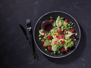 Feine Blattsalate mit Himbeer-Dressing