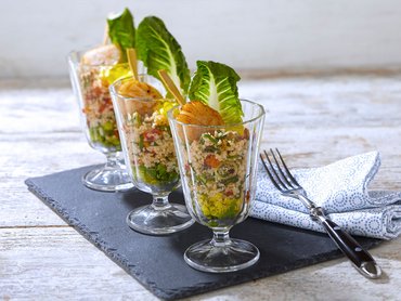 Jakobsmuschelspießchen an Gemüsebulgur